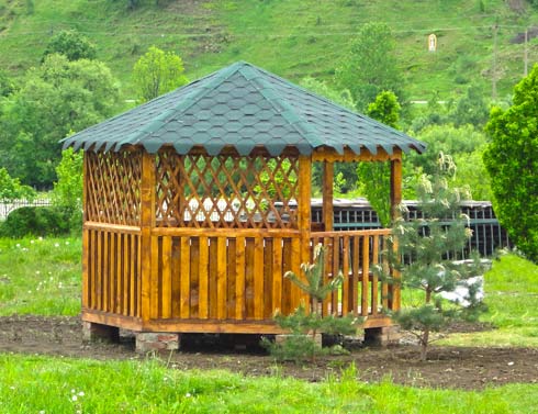 Поруч з готелем, на галявинці, є затишна альтанка для відпочинку. |