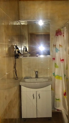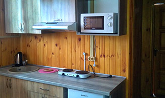 душ, фен), а так само обладнаний кухонний куточок (СВЧ плита, електроплита, витяжка, електрочайник, раковина, посуд та інші кухонні приналежності).