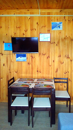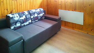 1 велике ліжко, розкладний диван, стіл і 4 стільці, телефон, телевізор, електрична батарея опалення, санвузол (туалет, умивальник,